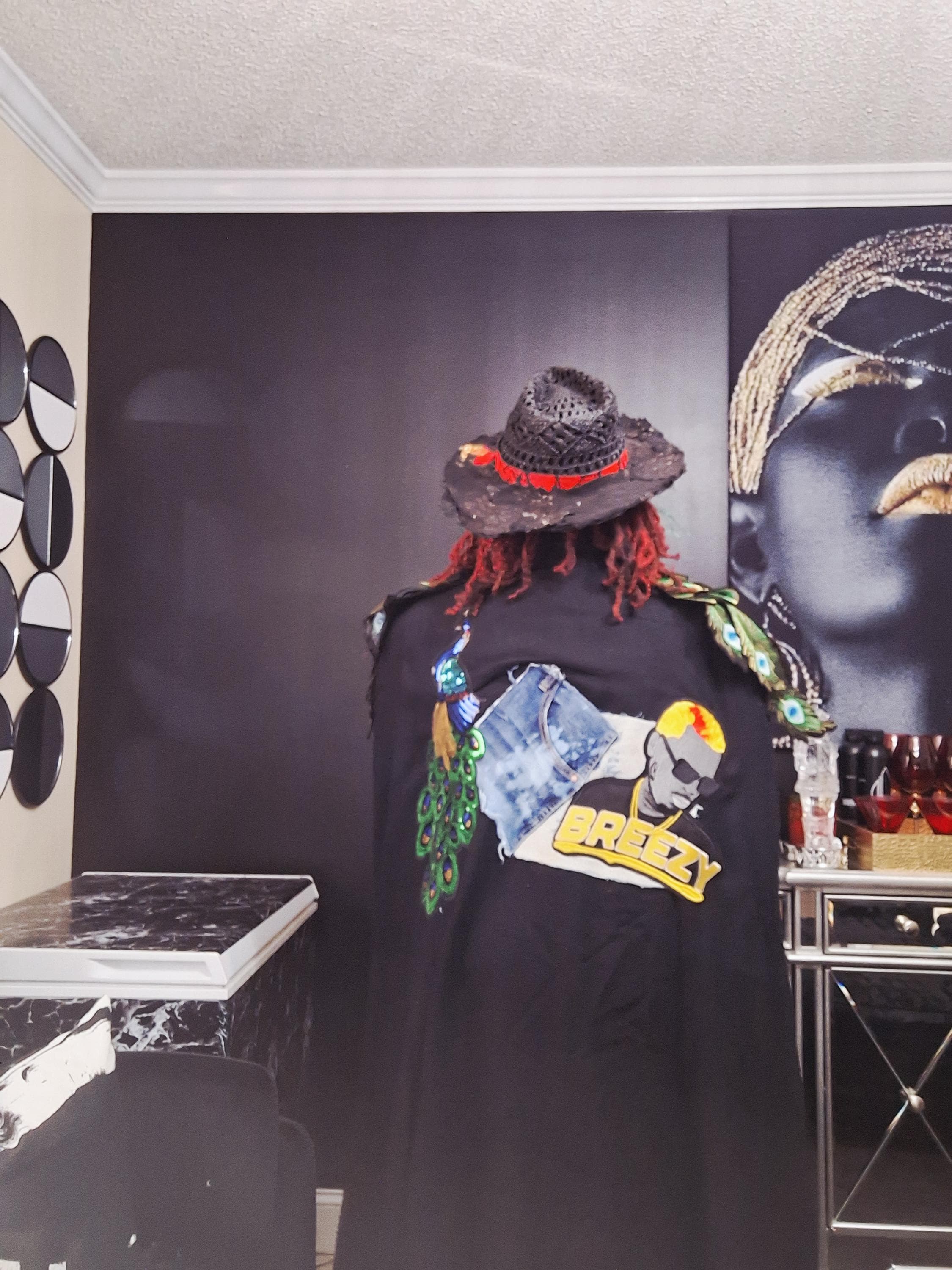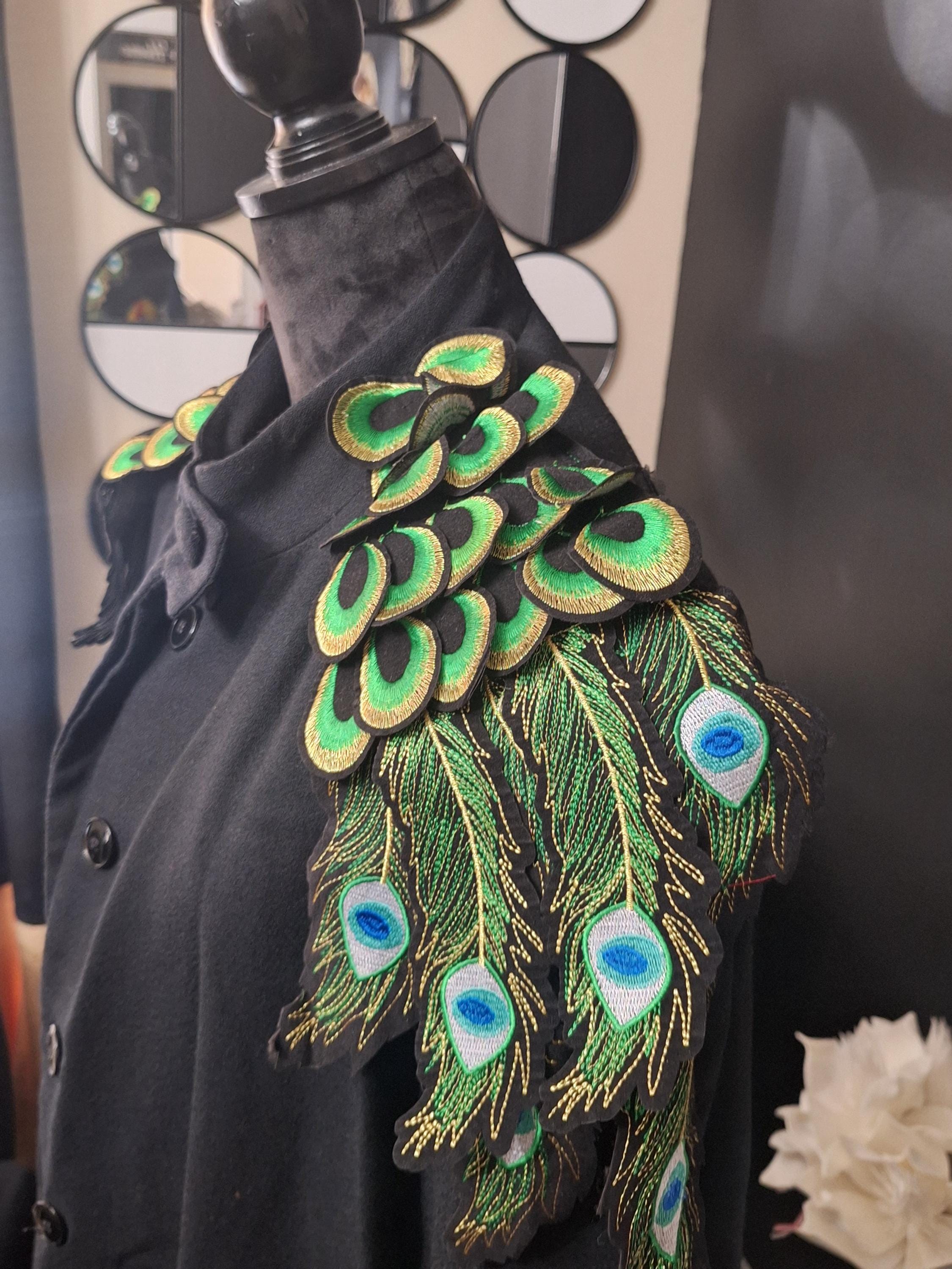Oversized Upcycled Chris Brown Peacock cape fits up to size 2x.