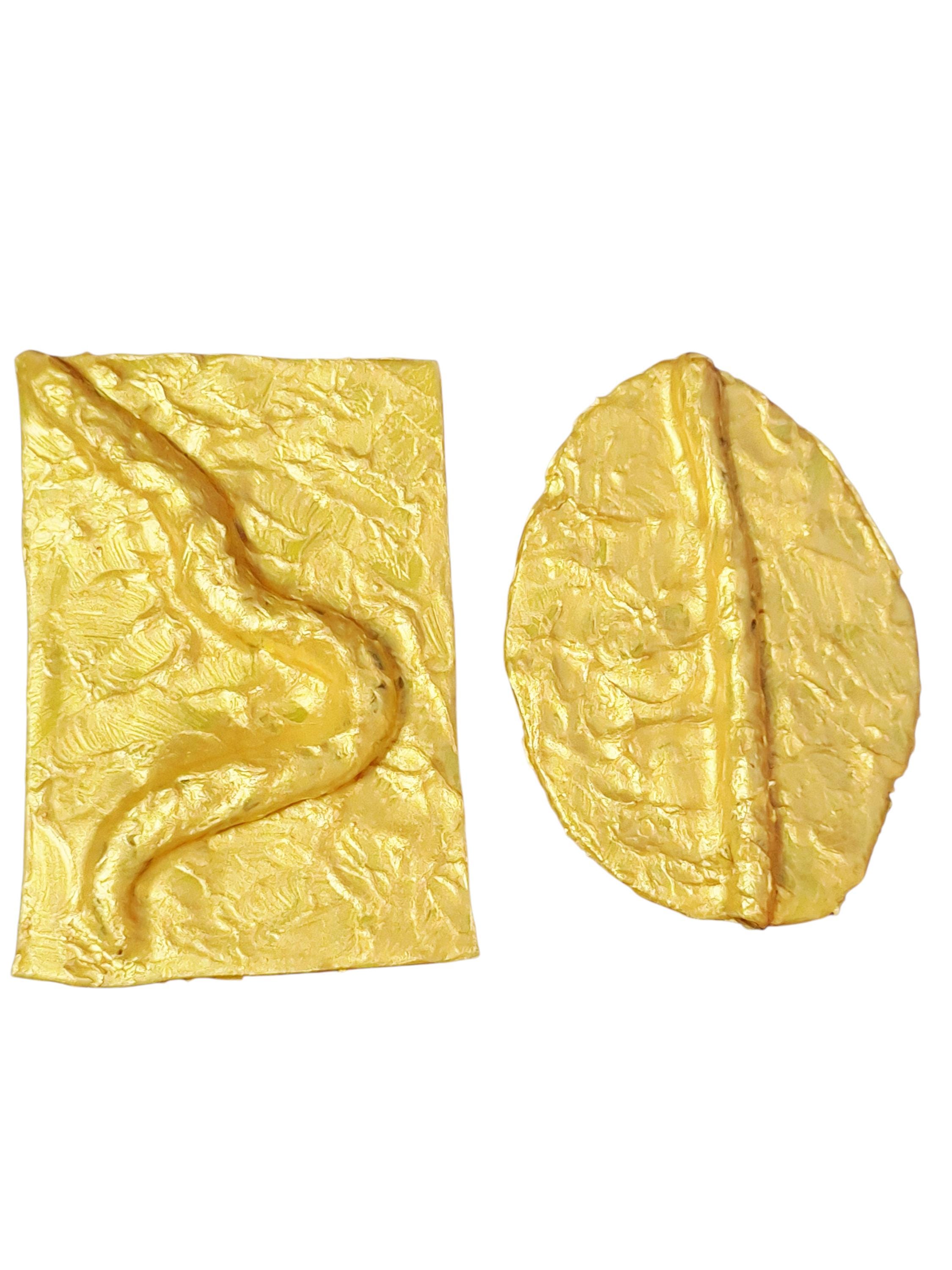 These pieces are gorgeously hand sculpted from clay and gold painted by hand.