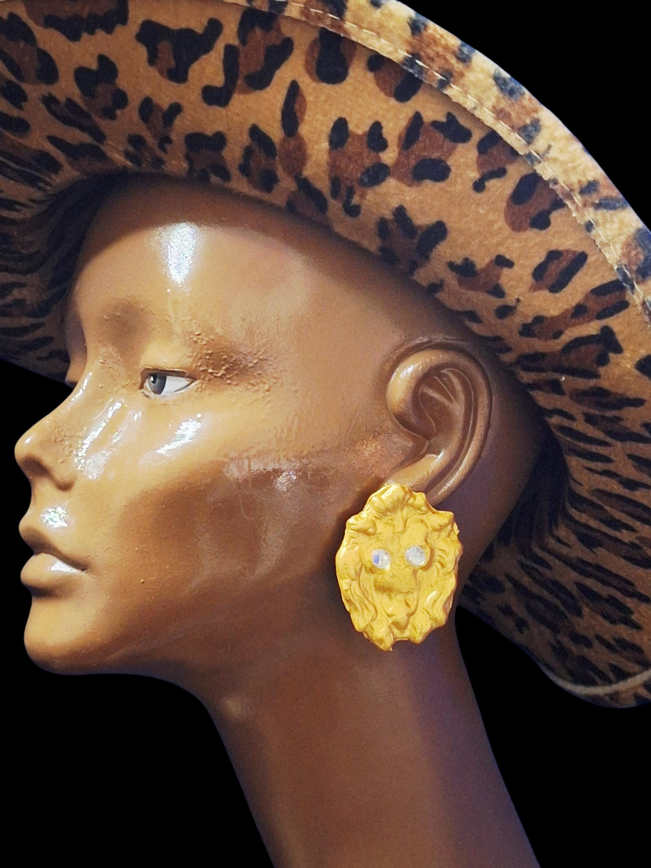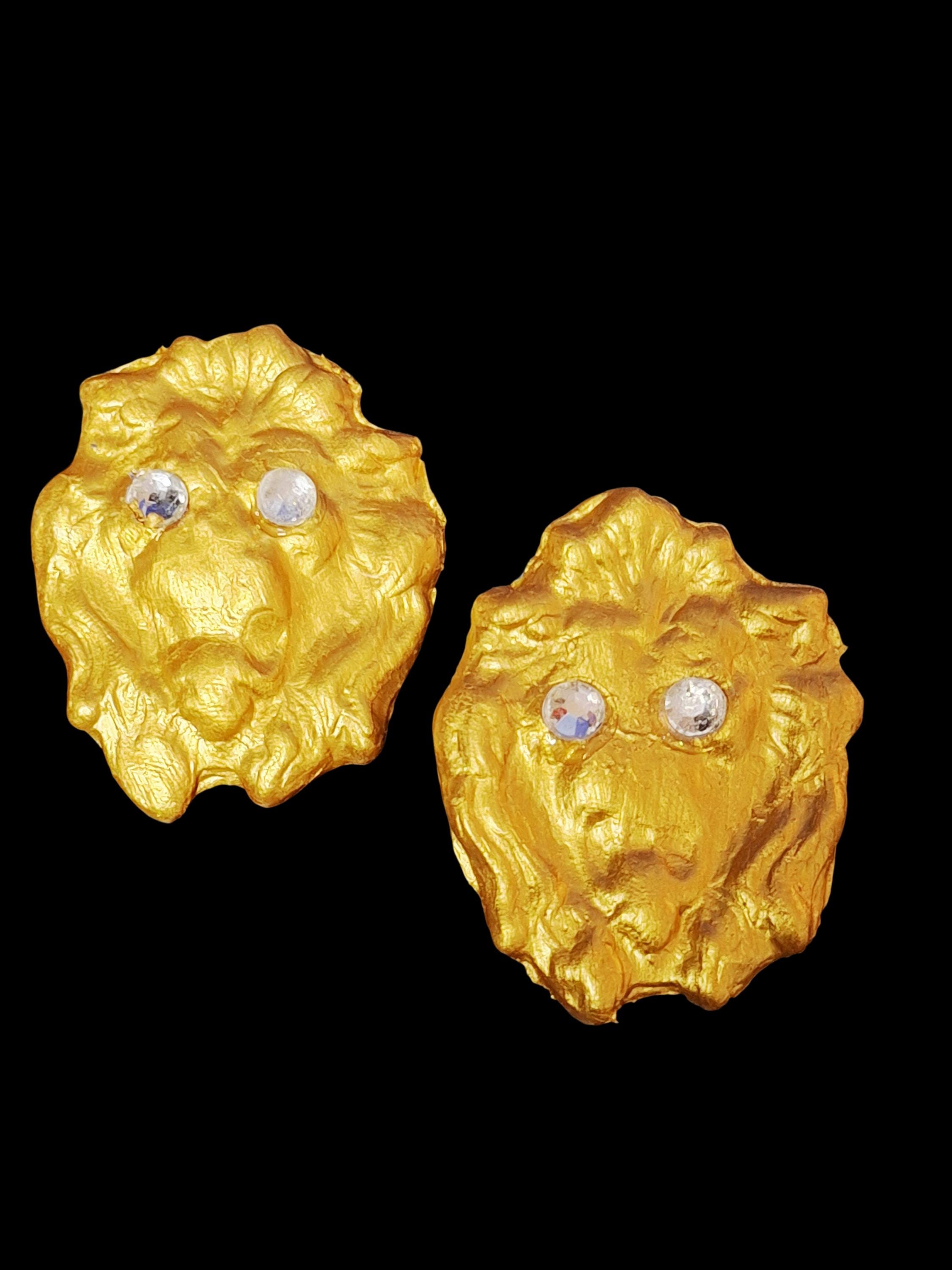 Vintage Gold Handmade Lion Clay Earrings: Animal Print Statement Earrings