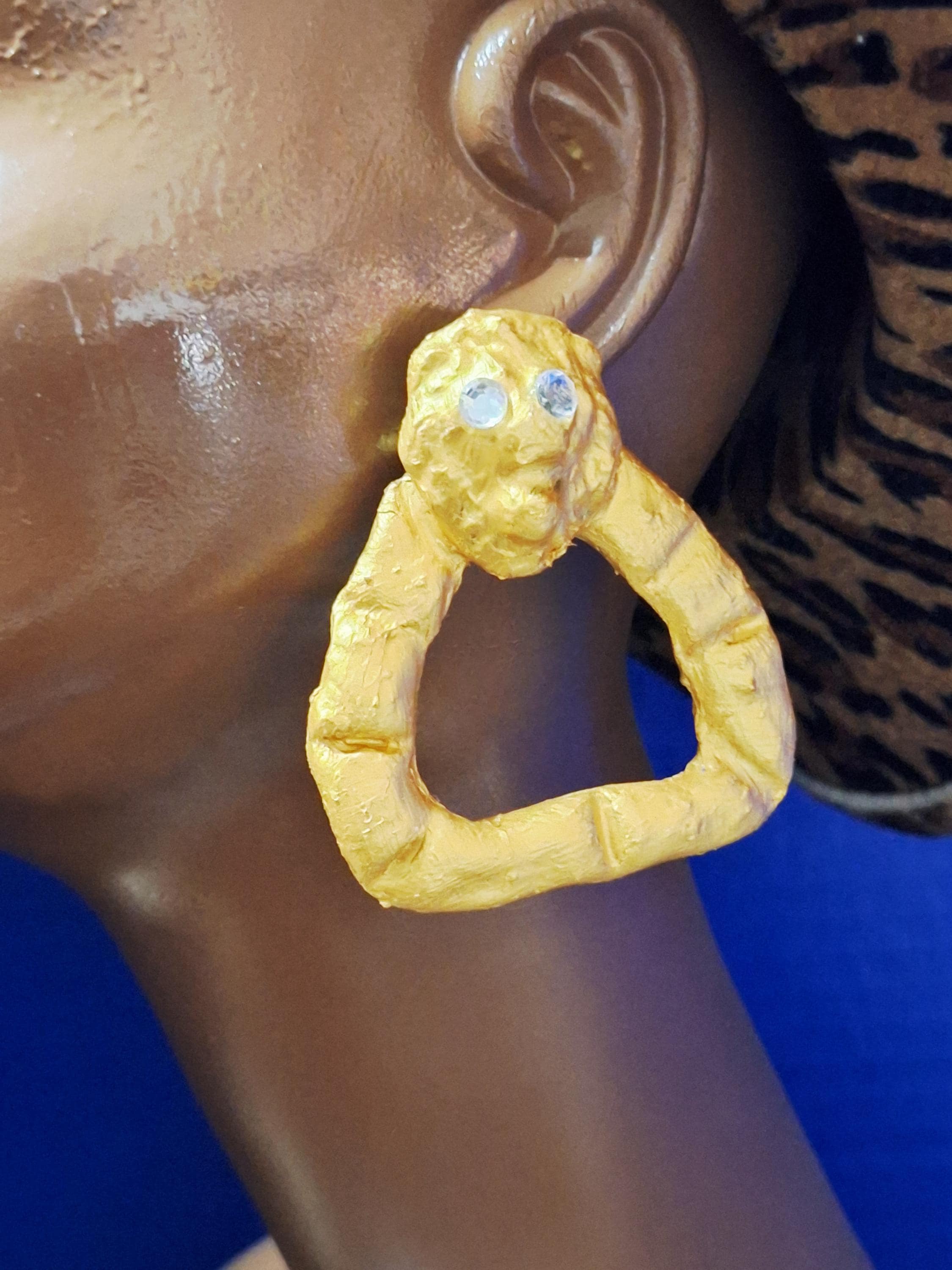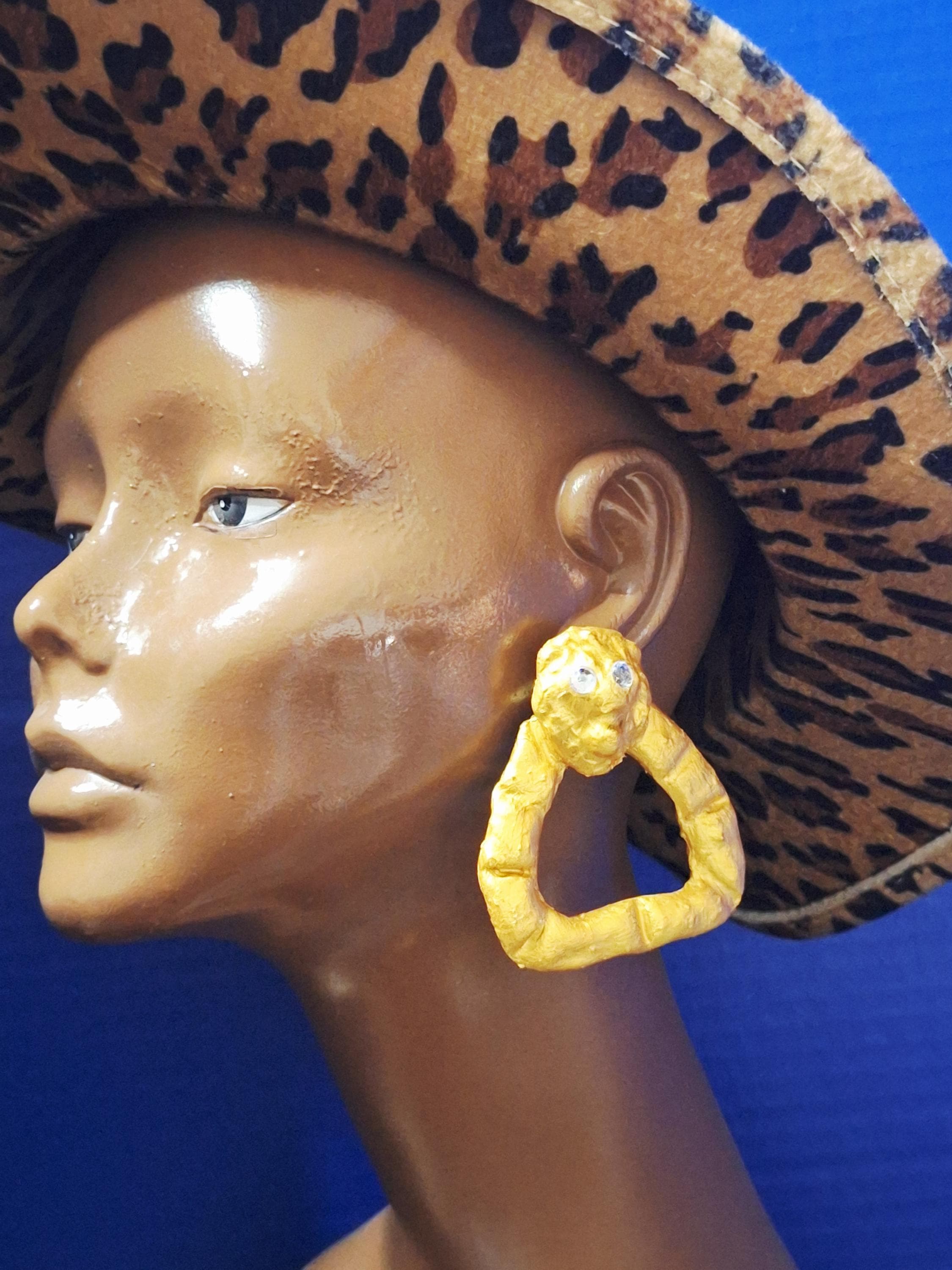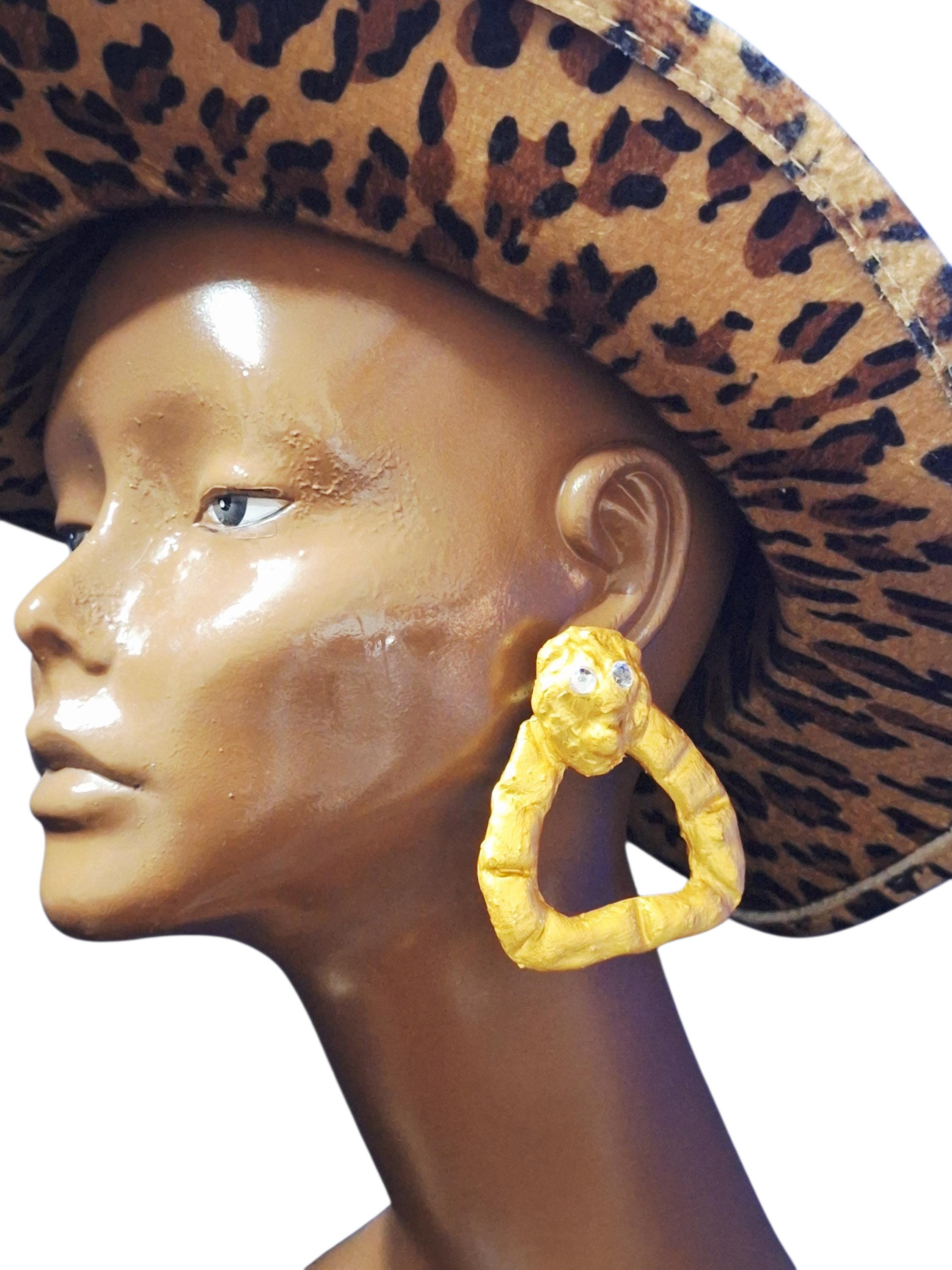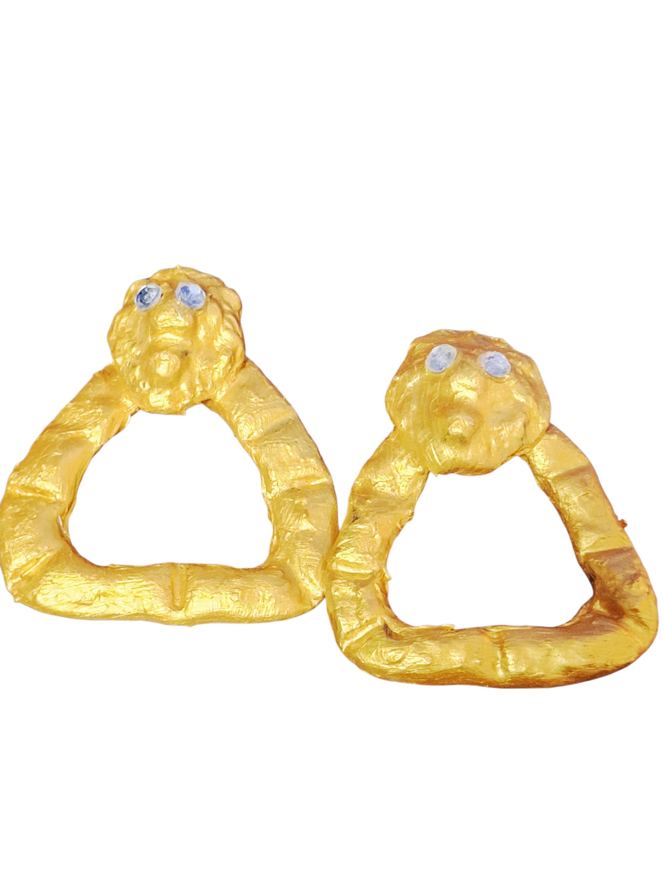 Vintage Gold Handmade Lion Clay Earrings: Animal Print Statement Earrings