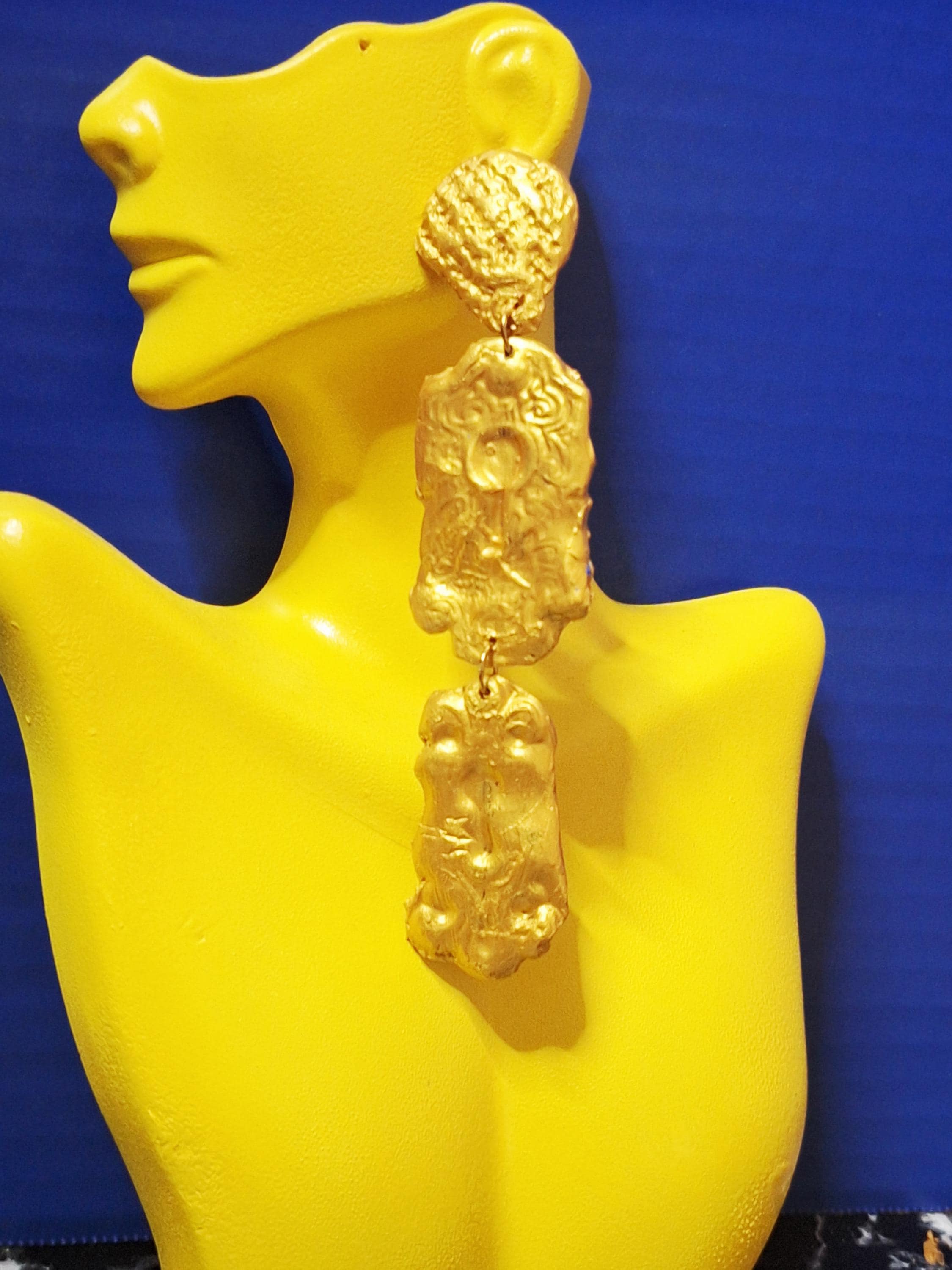 Polymer Clay hand shaped Geometric gold post Statement Earrings. No two earrings will be exactly the same.