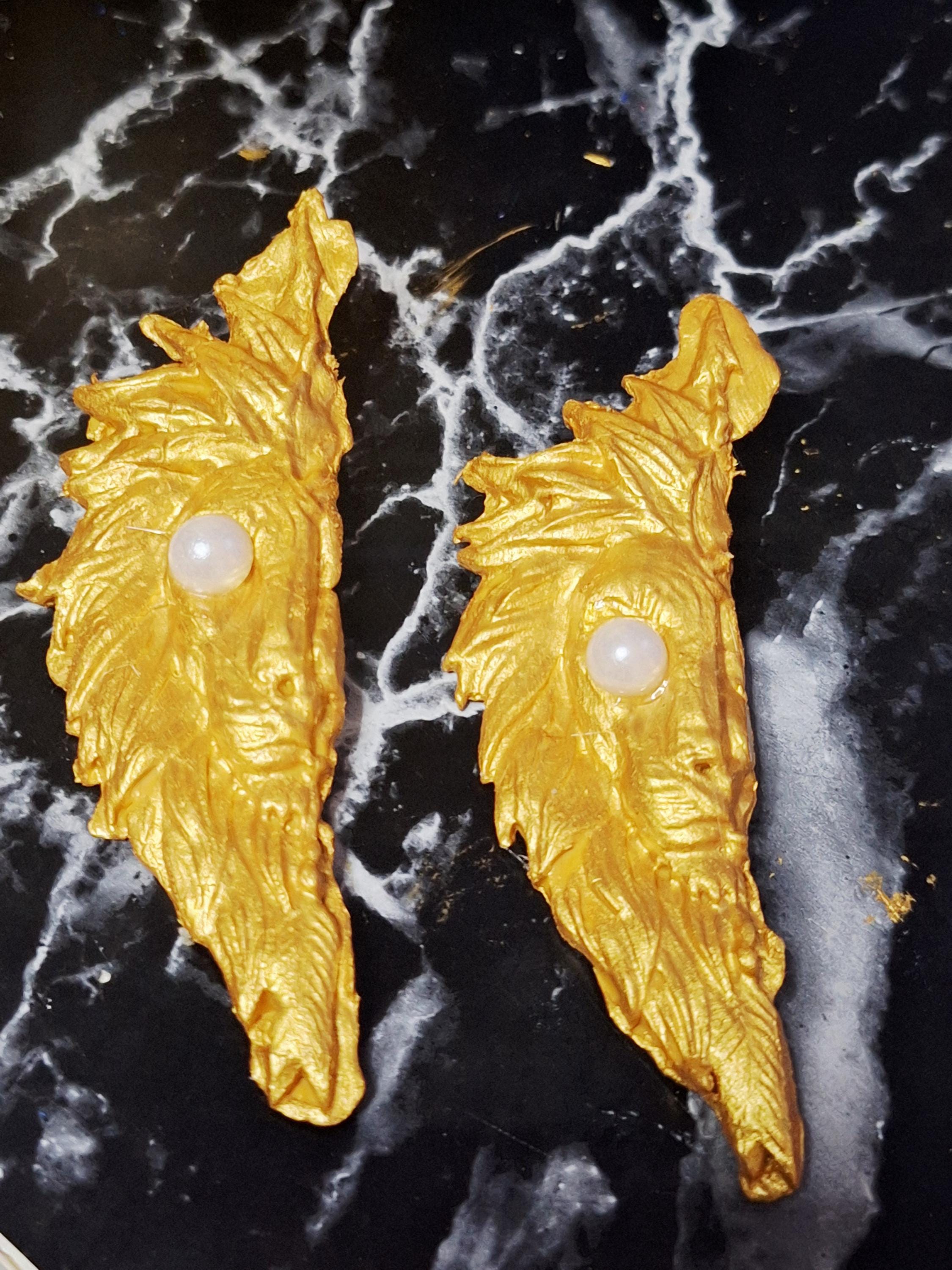 These pieces are gorgeously hand sculpted from clay and gold painted by hand.