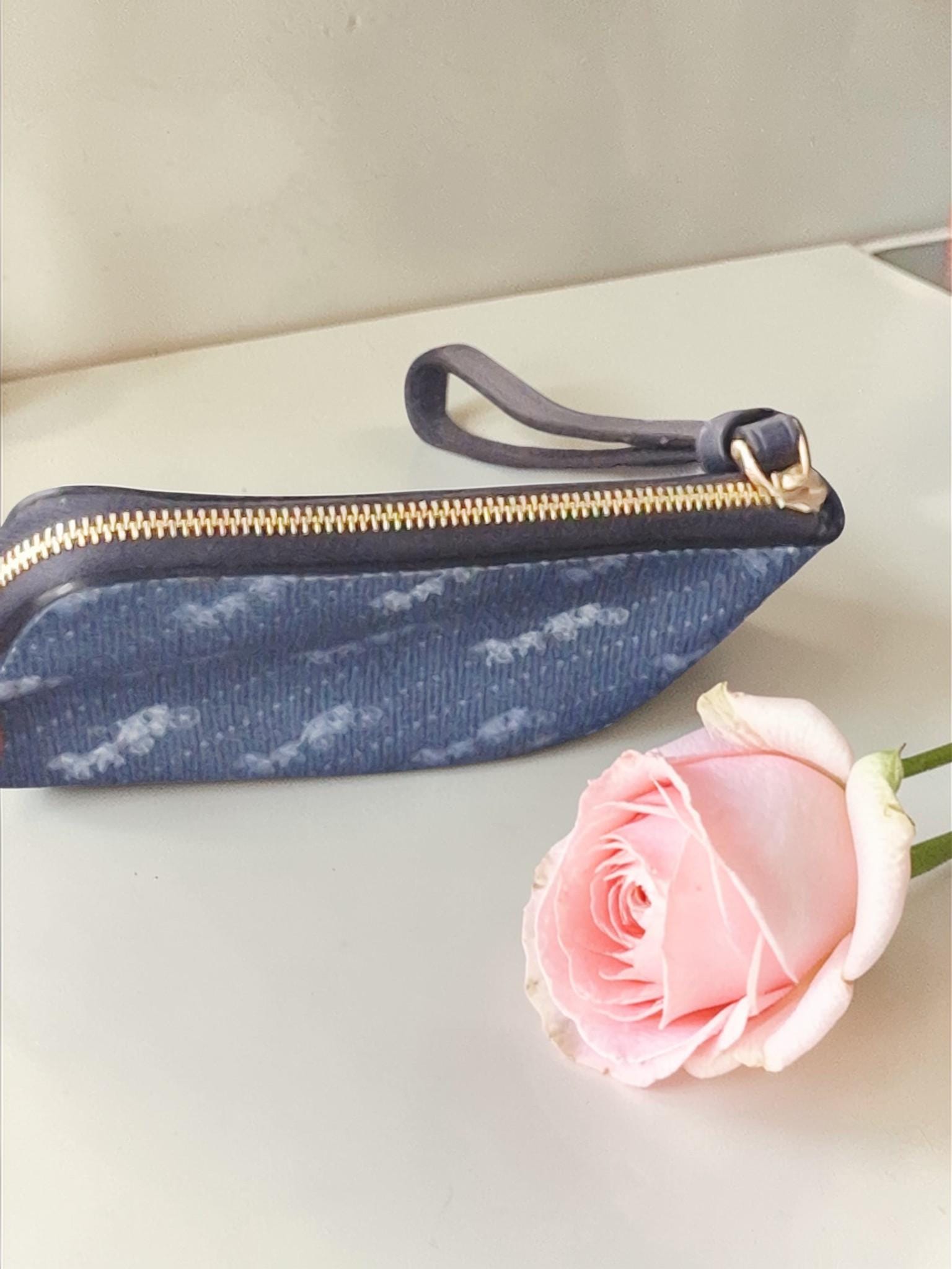 Has a small highlighter marking on the front but doesn't take away from the beauty of the wristlet.