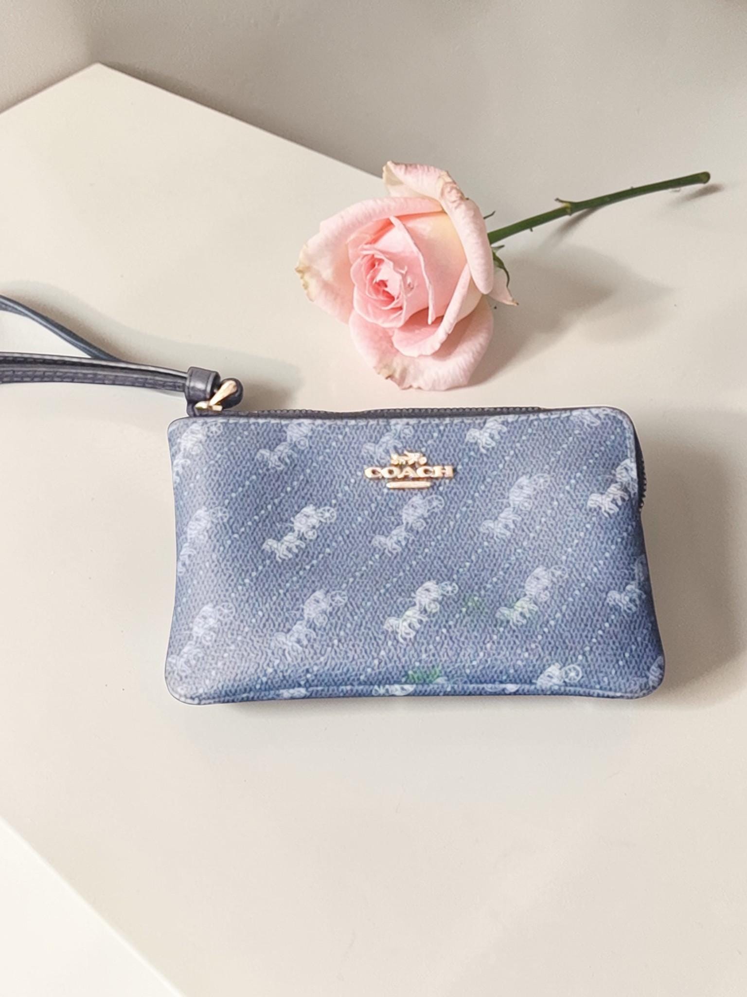 Coach Corner Zip Wristlet With Floral Cluster Print