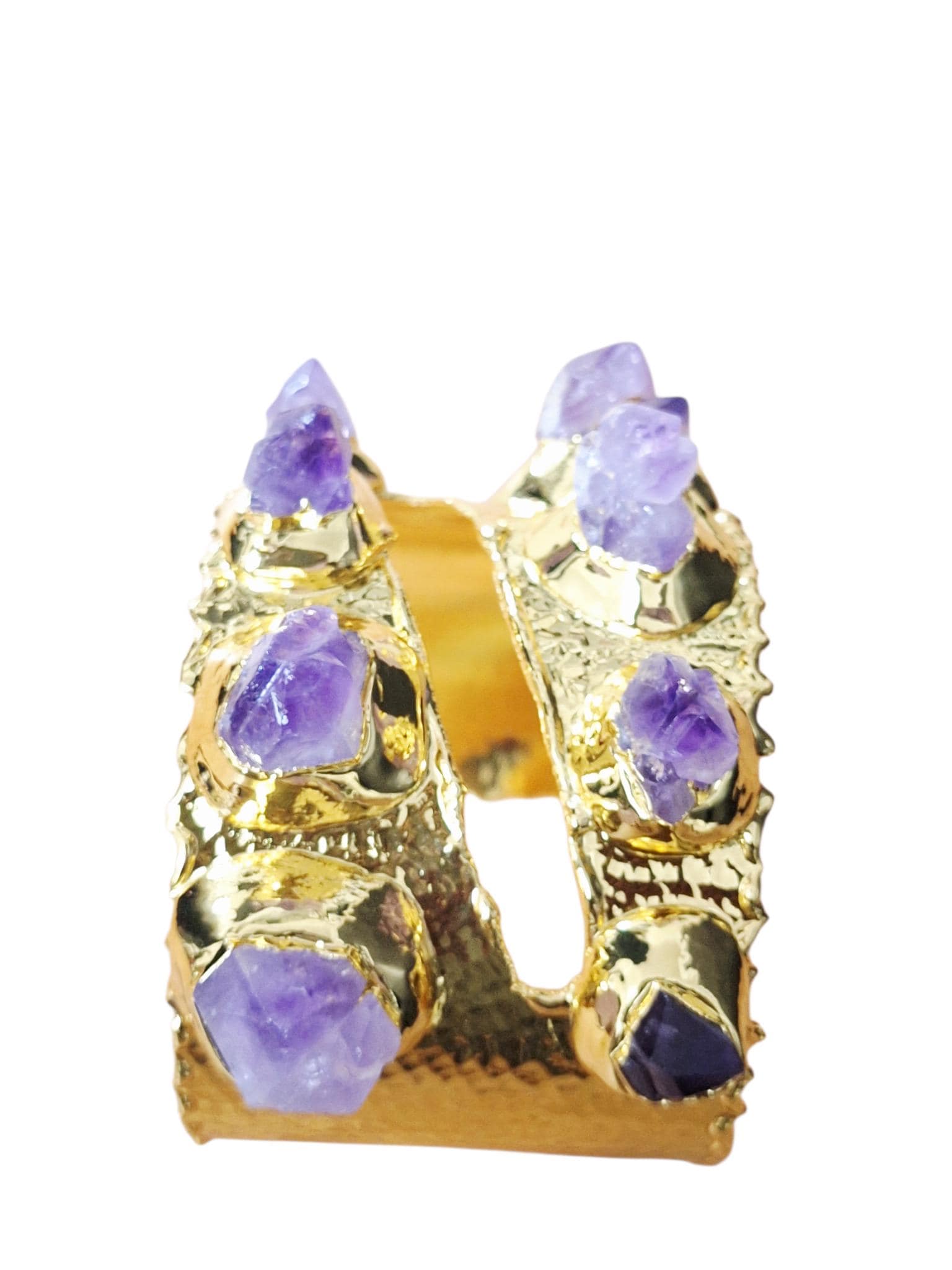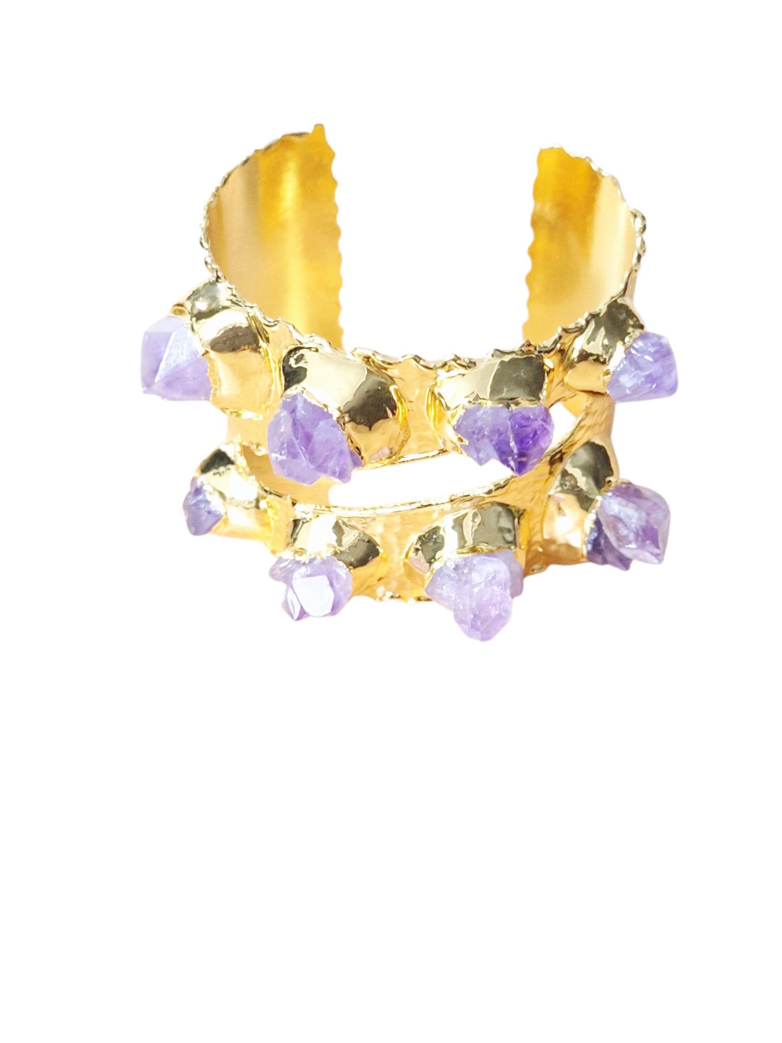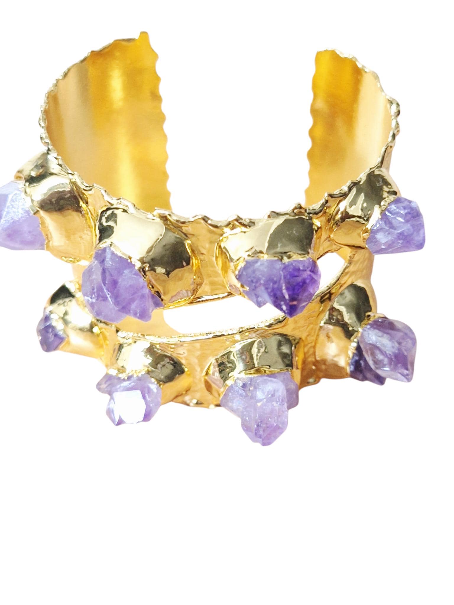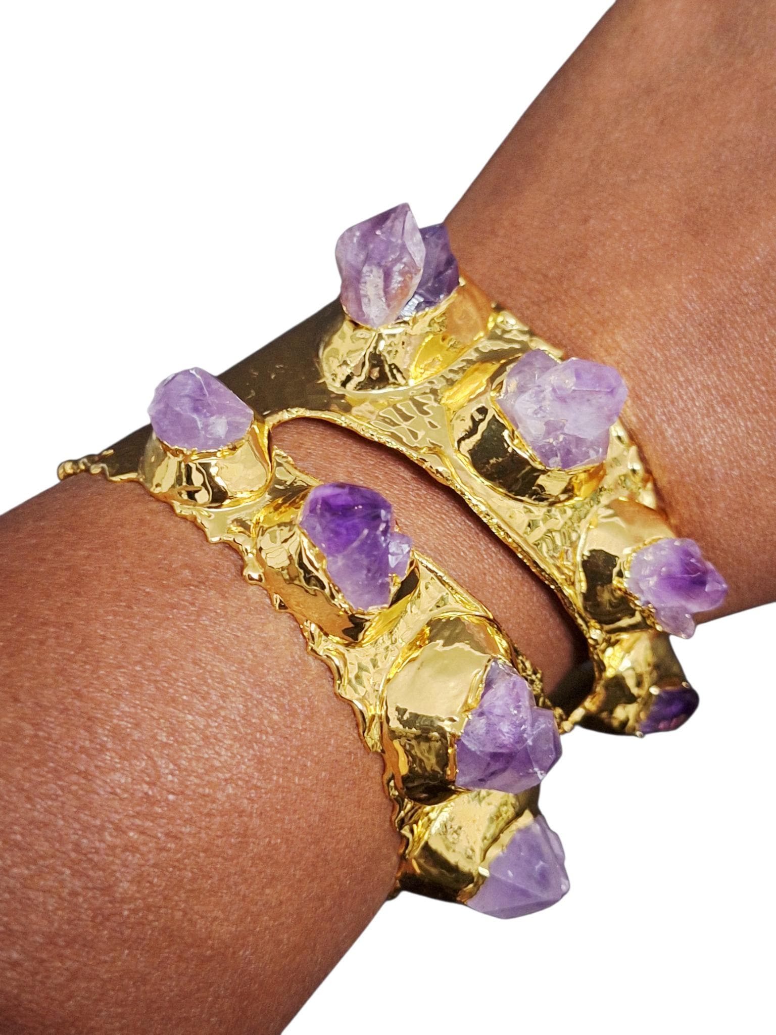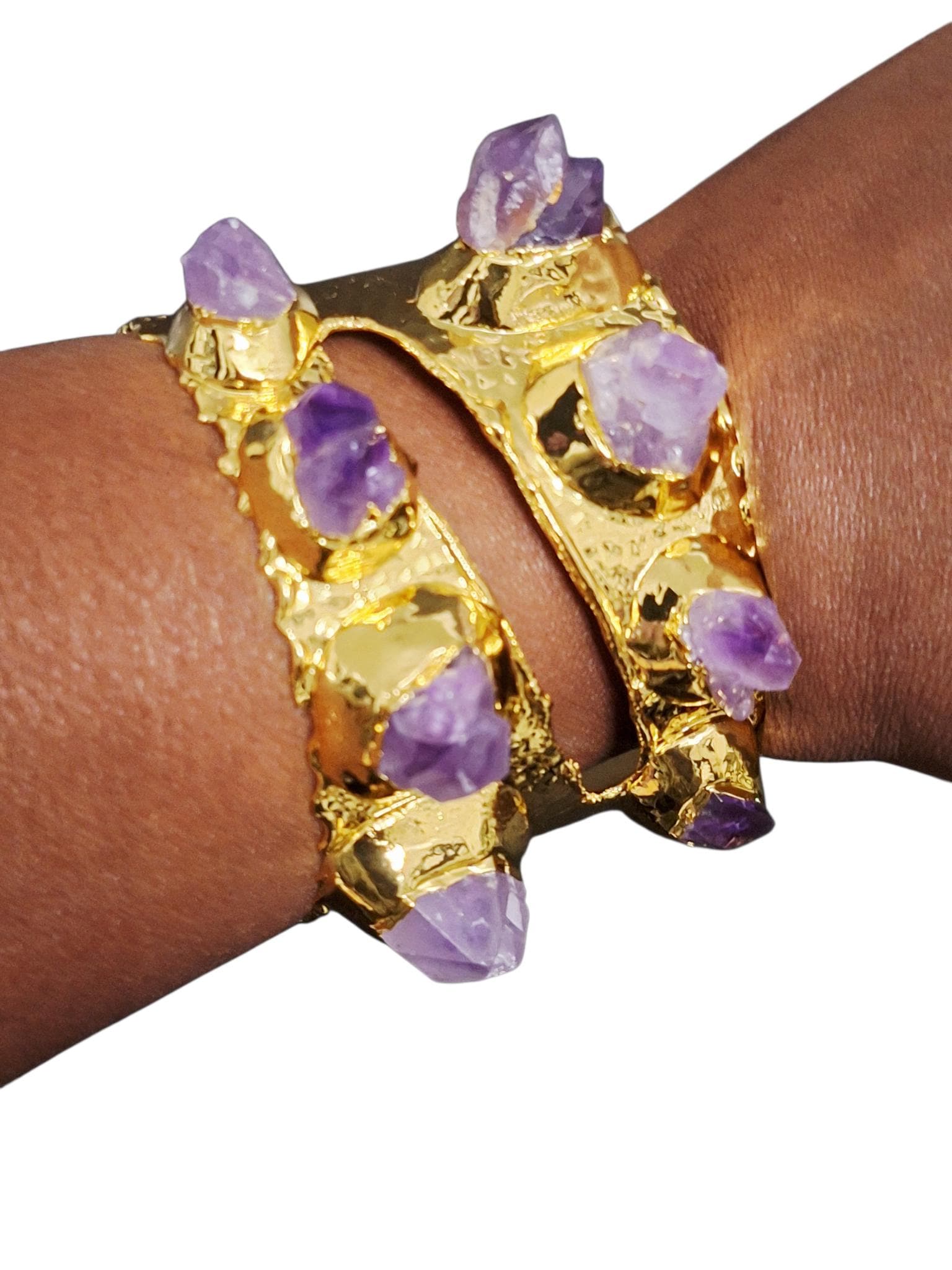 This Chunky Gemstone Statement Bangle pairs well by stacking along with other bangles or Beaded Bracelets.