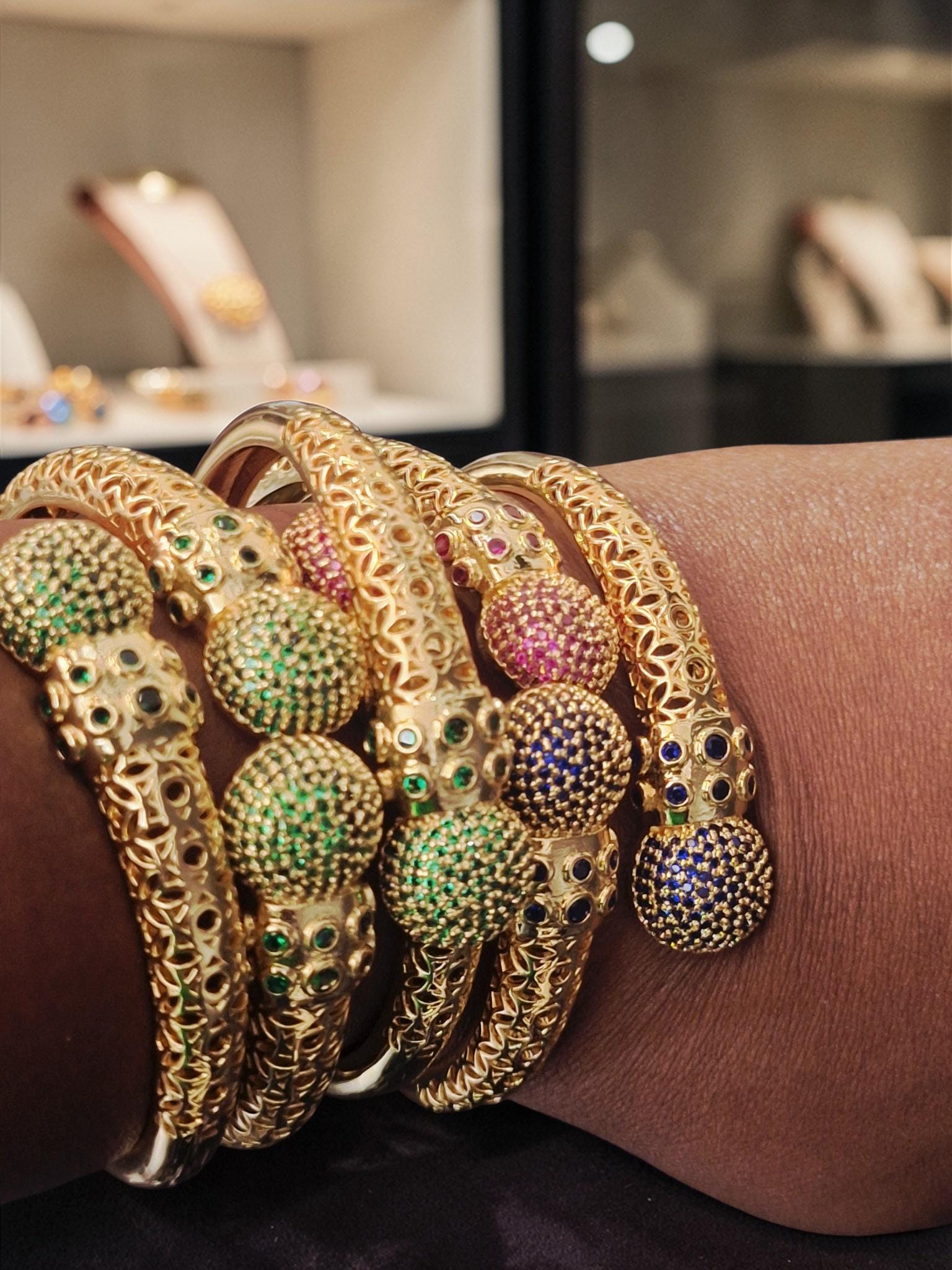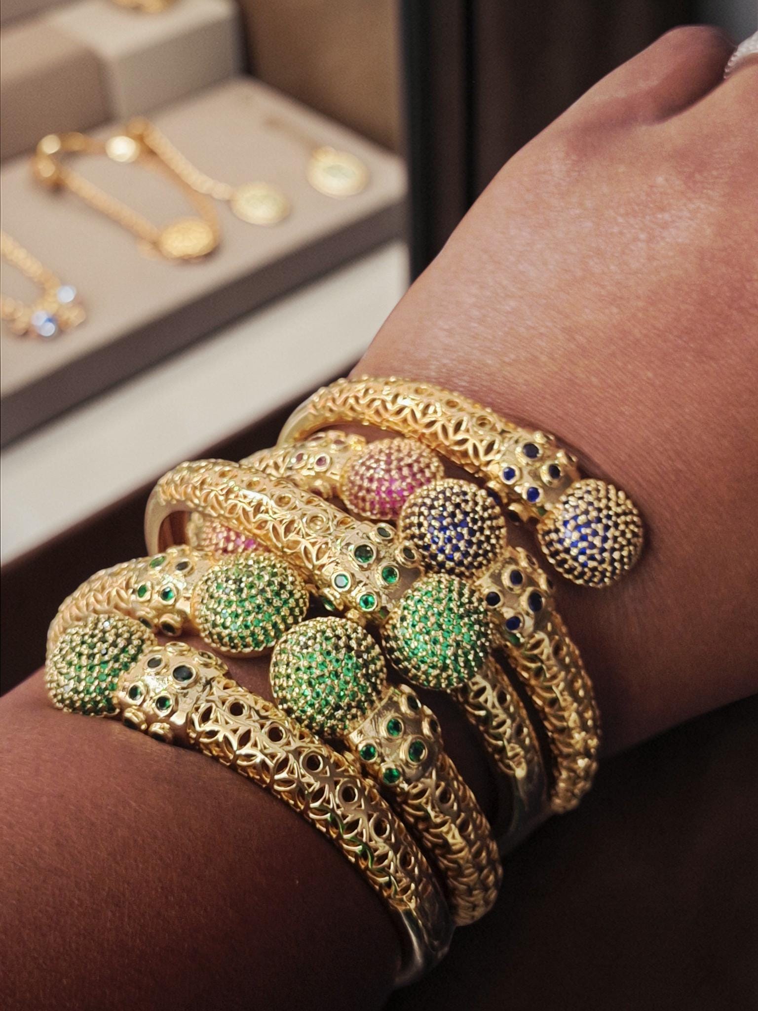 This Statement Bangle pairs well by stacking along with other bangles or Beaded Bracelets.