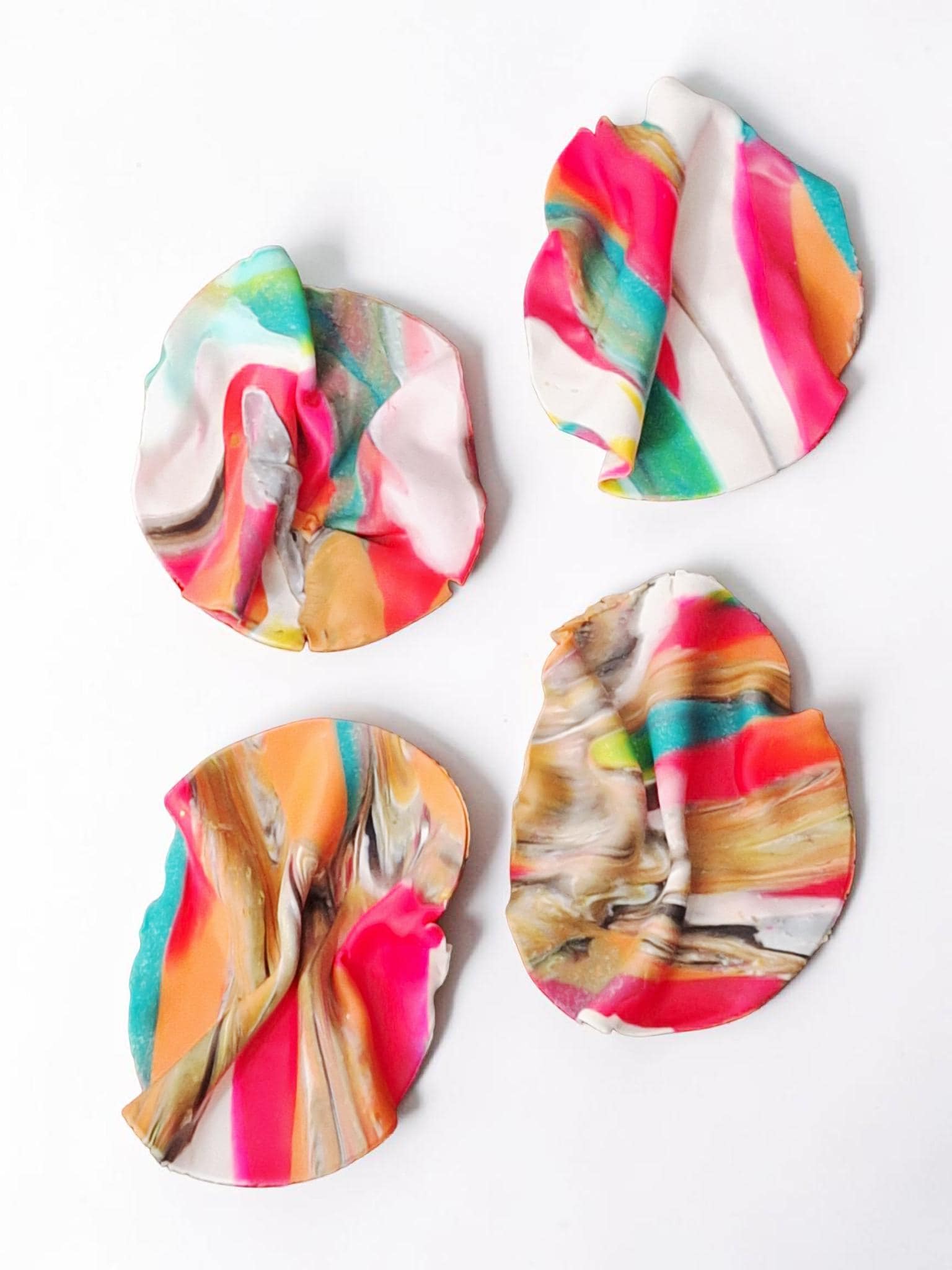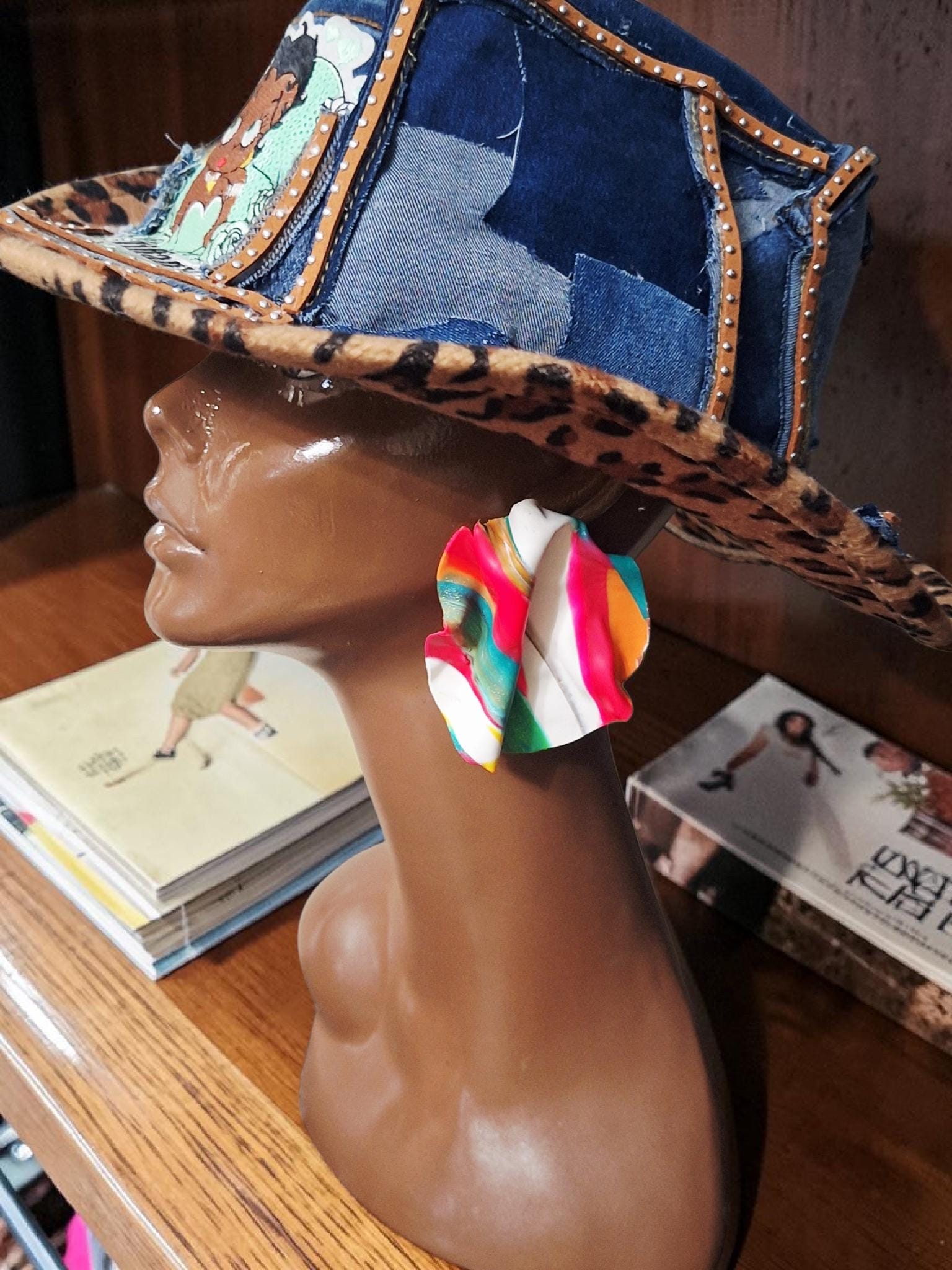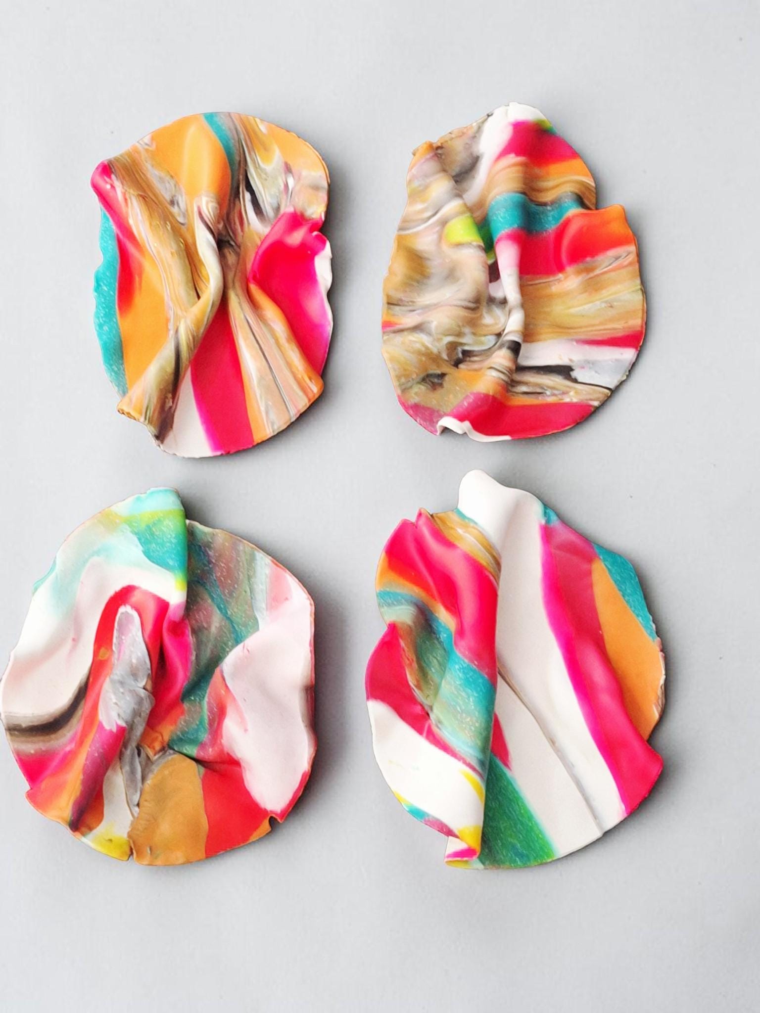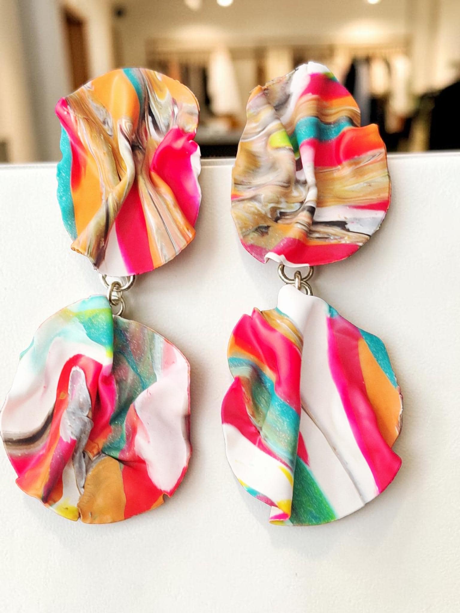 Polymer Clay hand shaped Geometric gold post Statement Earrings. No two earrings will be exactly the same.