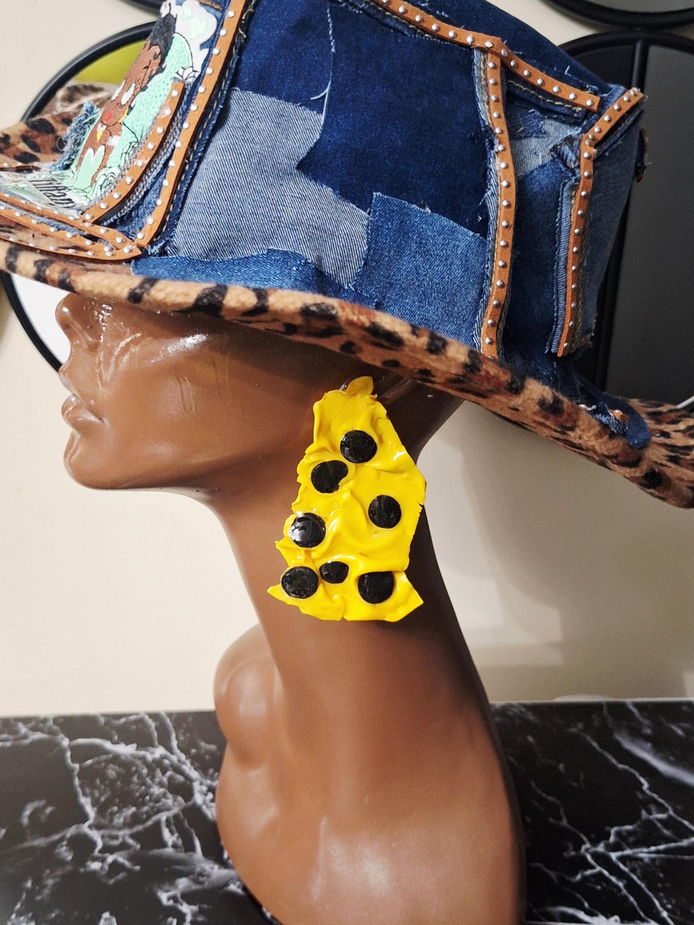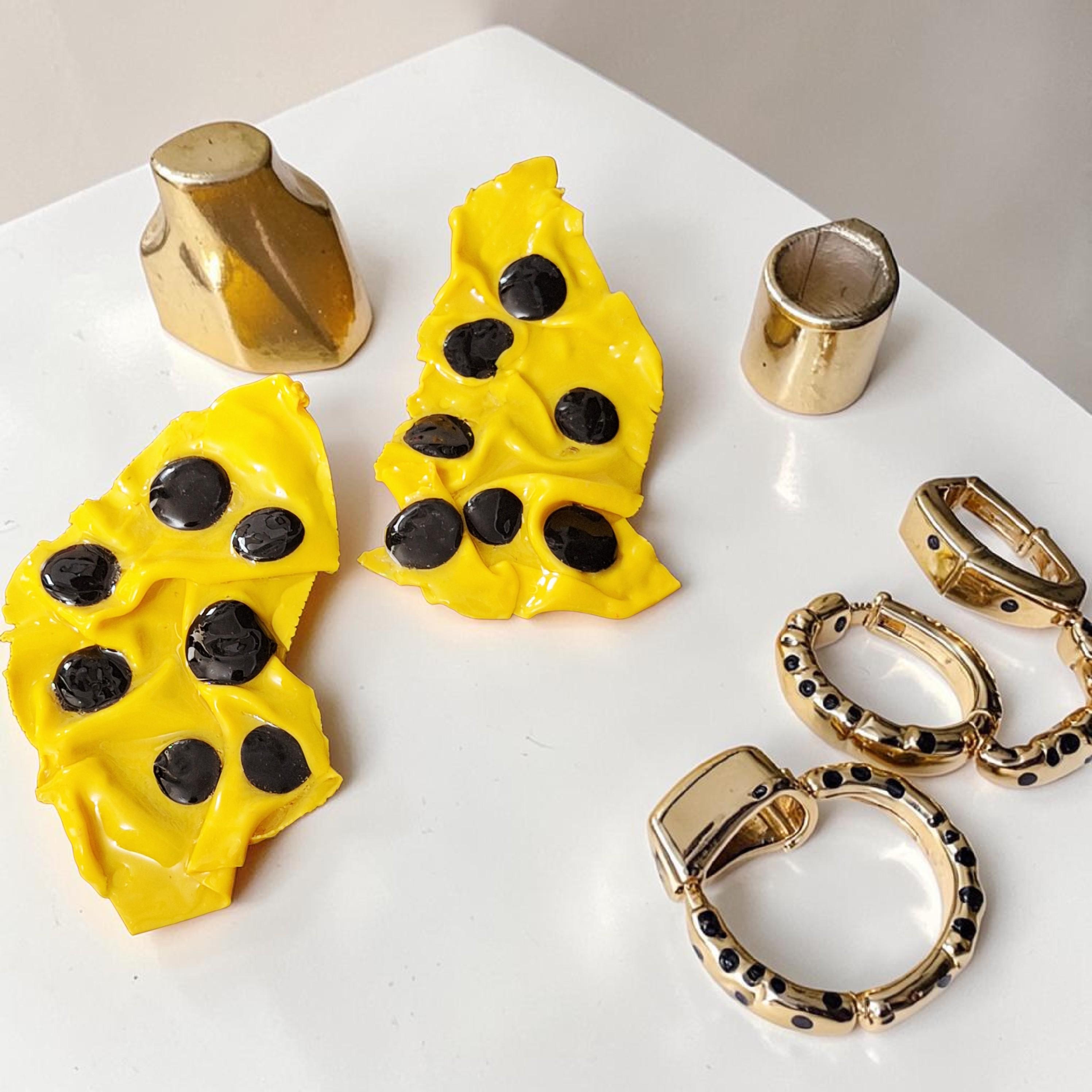 Polymer Clay hand shaped Geometric gold post Statement Earrings. No two earrings will be exactly the same.