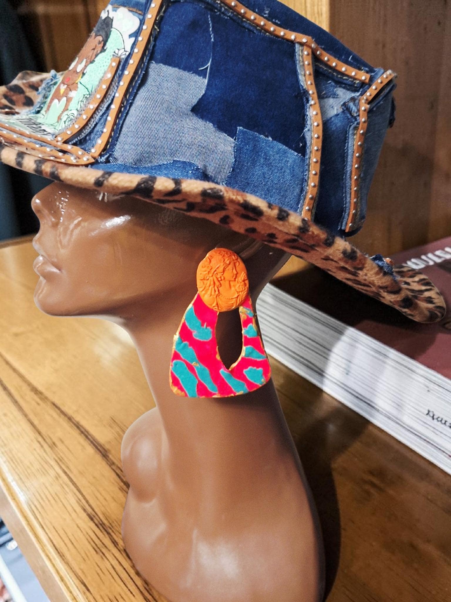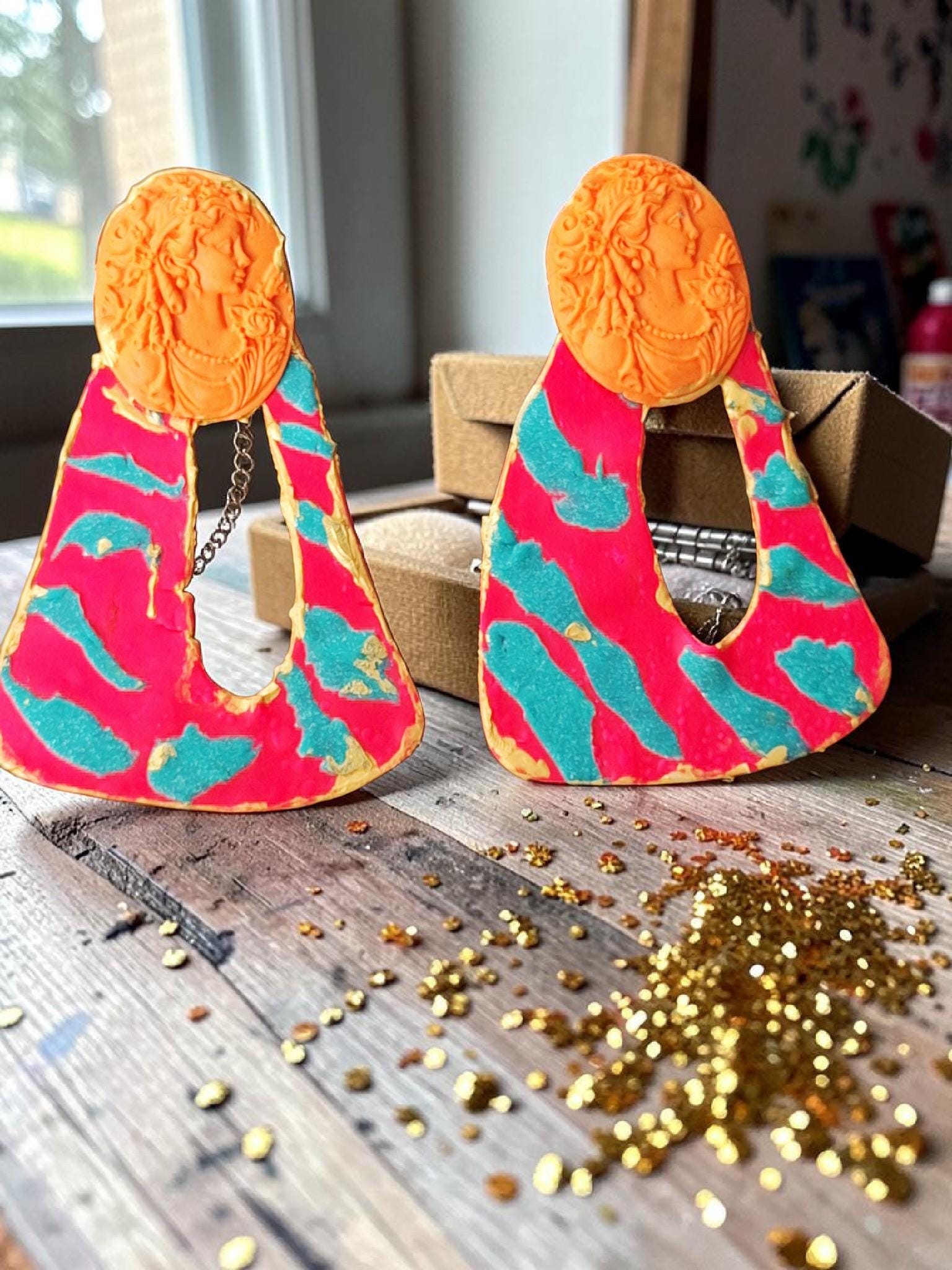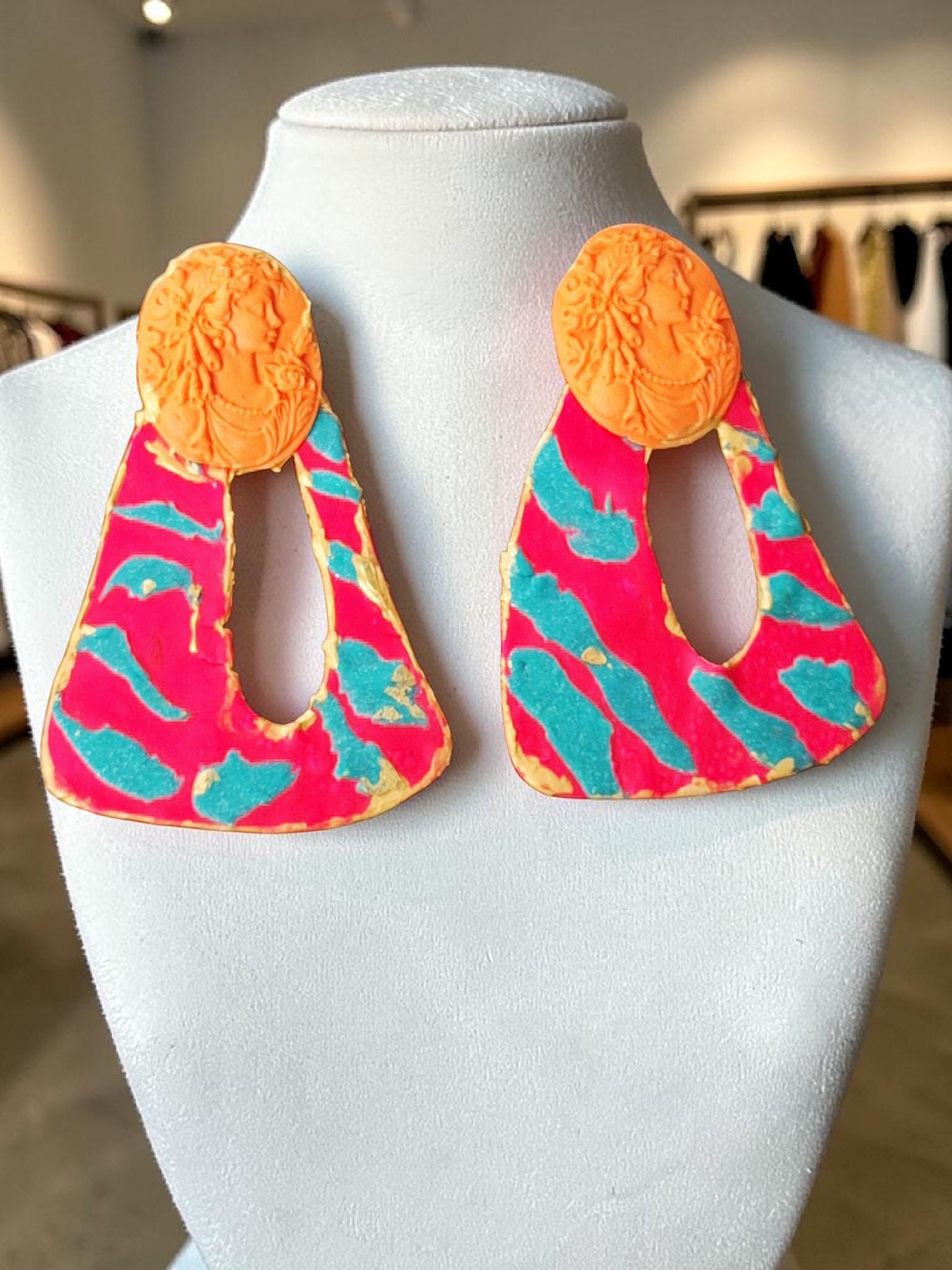 Polymer Clay hand shaped Geometric gold post Statement Earrings. No two earrings will be exactly the same.